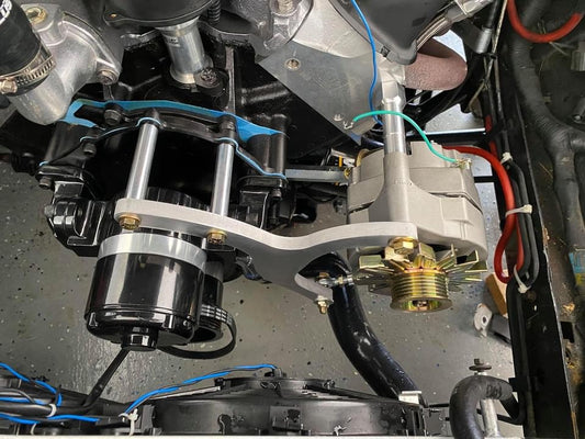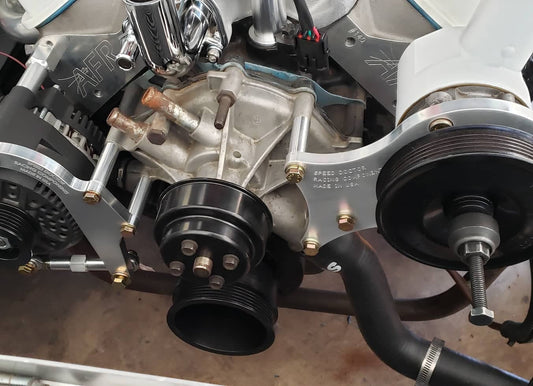 SBF 8.2/9.5 Passenger Side Alternator Mount With Electric Water Pump With Backing Plate