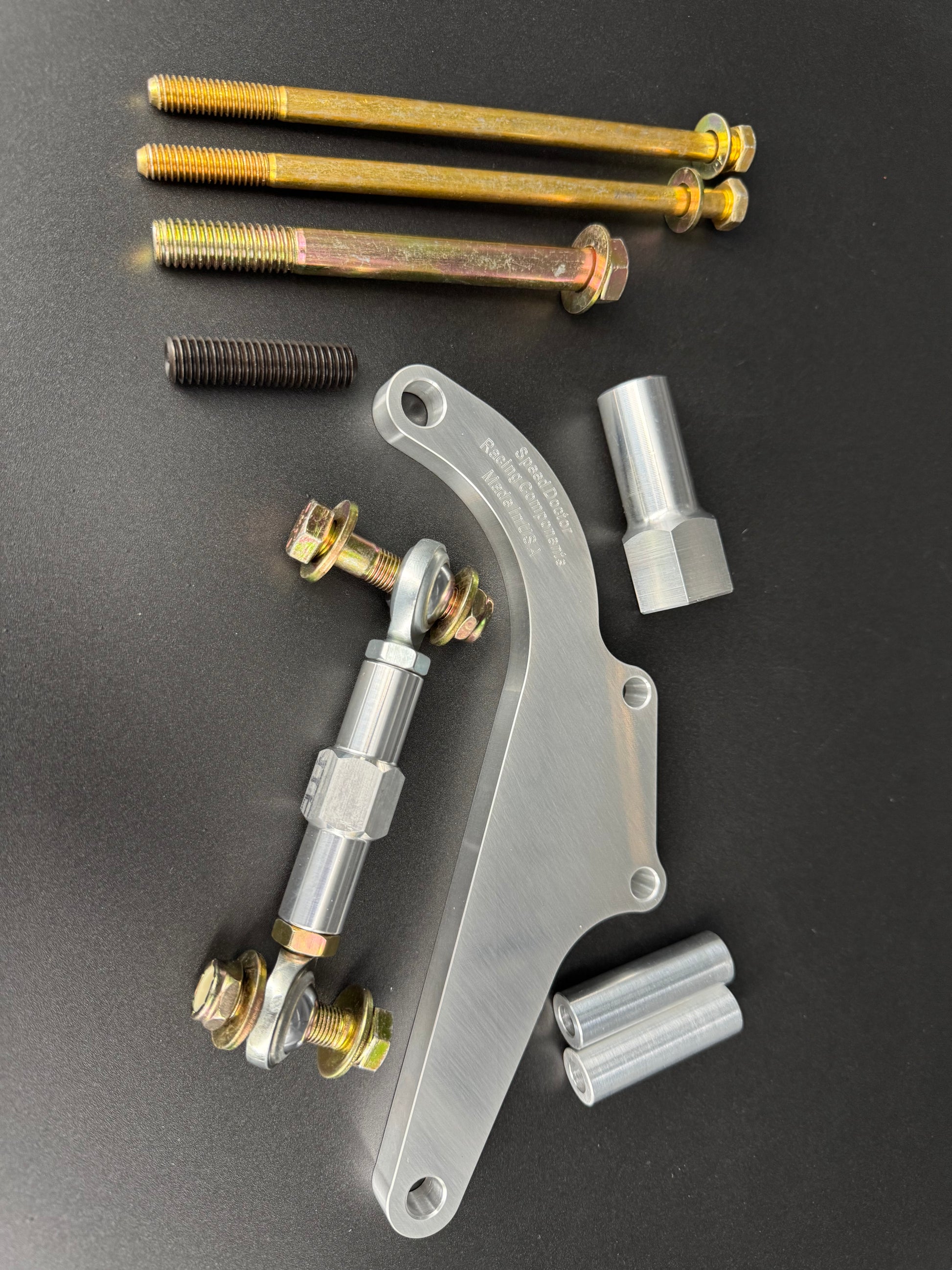 note: using the stock reverse rotation (ccw rotation/smooth pulley) 79-93 foxbody water pump requires use of ps or ac, or our drivers side ac/ps delete idler to use this original low mount position kit.